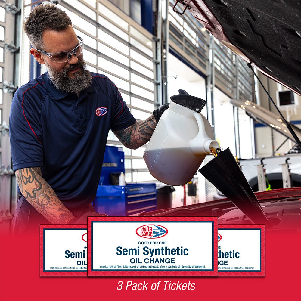 Delta Sonic's Semi Synthetic Oil Change includes the choice of 5W20, 5W30, 5W40 or 0W20 oil. All oil changes include our courtesy maintenance check: